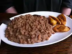 Ewa aganyin (Yoruba) (also spelled as Ewa agoyin)[1] is a Yoruba street food commonly eaten in Nigeria.[2] The dish consists of beans cooked until extremely soft and then mashed.[3] Other ingredients, such as bell peppers, onion, ginger, dried chilies and palm oil, are added to form a stew. It is commonly eaten with bread, a popular combination in Africa.