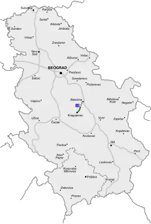 The expressway 24 (Serbian: Брзи пут 24 / Brzi put 24) is an expressway in Serbia, that links the A1 motorway with Kragujevac, at the State road 23. Section between Kragujevac and Cvetojevac has three lanes (including emergency lane) in each direction, while the rest of the route has two lanes in each direction.