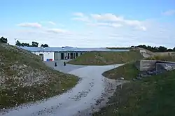 Sweden's capacity to protect its neutrality was questioned after the Crimean War 1854–56. England and France persuaded Sweden to fortify the inlet at Fårö with artillery batteries and naval mines. The fortress was built from 1885 to 1886 and consisted of three fixed batteries; Central Battery (batt. I), Northern Battery (batt. II) and Southern Battery (batt. III). At the turn of the century, the batteries were reconstructed. The batteries I and II were given modern quick-firing 57 mm guns, four per battery.[1] Fårösund Fortress, which was name of the coastal position from 1915, was disbanded as such on 30 September 1919, and the coastal artillery detachment was relocated to Vaxholm Fortress[2] and all equipment was removed.[1] After the fortress was closed down and was taken over by the Swedish Prison and Probation Service in 1919, a penitential center was establishment. The fortress had been proposed as a detention center for social dangerous offenders, if and when legislation for such came about.[3] No such laws did arise and the entire fortress was declared a listed building in 1935.[1]