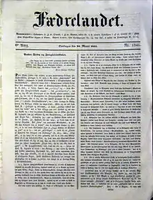 Fædrelandet was a National Liberal Danish newspaper published from 1834 to 1882 in Copenhagen, Denmark. It played a central role in the fight for a free constitution in the 1840s.