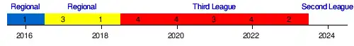 | 2018–19 | Third League | 3 | 24 | 21 | 5 | 8 | 76 | 35 | +41 | 68 | 4th | DNQ | Cup of AFL | Q1 | 16 | |