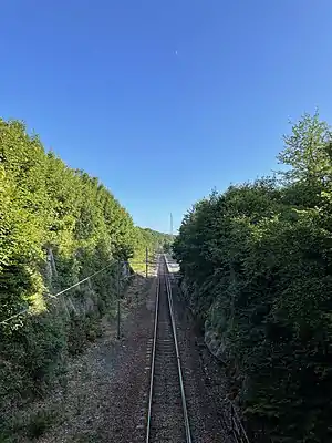 Originally a two platform station, it now has only one platform, the former northbound platform. The southbound platform was demolished and its track removed as part of the electrification of the Largs branch of the Ayrshire Coast Line in 1986. The 1,004-yard (918 m) long Fairlie Tunnel is directly to the north of the station.