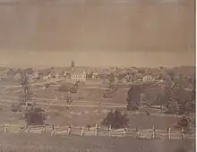 While early settlers were present in the Fairview area in the late eighteenth century, the streets and lots were laid out in 1830 by William McCleary and Wiliam Hawk. Between the years 1826 and 1839, only 13 houses existed in Fairview. Fairview was first incorporated as a borough in 1867 and chartered in 1874. By 1876, the population had grown to over 1,000 due to the oil boom which occurred in western Pennsylvania after oil was discovered on French Creek near Titusville, Pennsylvania. In 1874, C.D. Angell laid out additional streets and lots to the east of present-day Fairview. Due to a declining population going into the 1880s, Angell's expansion of Fairview was never realized. In 1880, after a series of misfortunes in the oil market, the population dropped to 333. On March 15, 1882, the Ralston and McQuade Bank on Main Street closed its doors with liabilities amounting to around $250,000 (equivalent to 7.5 million dollars today), affecting over 1,000 customers in the general area. A steady population of around 200-300 people have remained in Fairview Borough since the 1880s. Fairview saw a slight rebound after the turbulent 1880s due to the oil refineries located in nearby Petrolia and Karns City Boroughs.[5] [6]