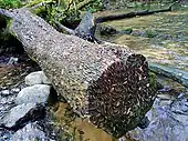 The Glen is connected to some ancient costoms. Children of nearby villages used to cast flowers petals in the burn, in order to encourage the fairies to provide fresh water to their hamlets.[3] A peculiar sight in the Fairy Glen are some old logs known as Money trees, bearing hundreds of coins hammered into their wood, traditionally considered gifts to the fairies.[4] Nowadays the management of the nature reserve discourages this habit, because of the pollution produced by metal corrosion and oxidation.