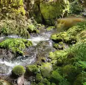A footpath follows the small river from its mouth in Rosemarkie beach flanking two pleasant waterfalls and, after the uppermost of them, ends up in a tiny road which runs on the left side of the glen.[2] A car park is available close to the beginning of the walk. Some part of the footpath are steep and can become slippery with rainy weather; dogs can access the walk but have to be conducted on short leads from April to August, because of the disturbance they can cause to wildlife.[5]