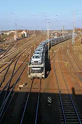 In 2010 and 2011, the passenger platforms were built in the upper part of the station and the railway facilities were transformed. The former Mitropa building was completely rebuilt. The upper railway yard was taken over in 2011 by BLG AutoRail, which uses it as a "hub for car transportation by rail".[16]