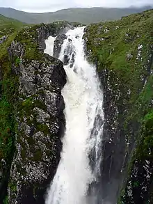 The Falls of Glomach, in Ross-shire, Scotland, is one of the tallest waterfalls in Britain, with a drop of 113 m (370 ft). The falls border Kintail, donated to the National Trust for Scotland in 1944 and subsequently incorporating West Affric in 1993. It is not easily reached on foot, requiring a 20 kilometre trek through remote and wild countryside.[1]