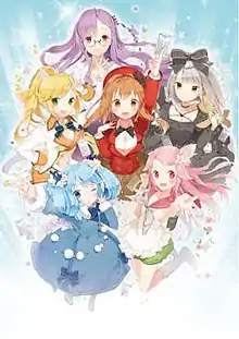 ![]() Fantasista Doll promotional image. From top (left to right): Madeleine, Sasara, Uzume Uno, Akari, Katia and Shimeji. | |