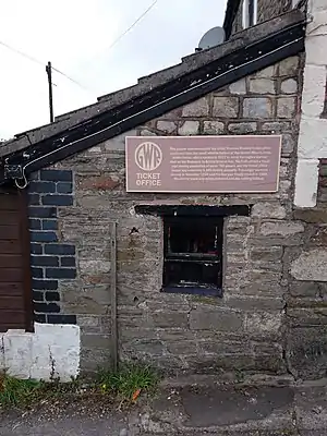The station opened on 11 July 1927 by the Great Western Railway.[1] Passengers had to buy their tickets from a tiny office behind the Miner's Arms pub. The station was closed to both passengers and goods traffic on 2 November 1959.[2]