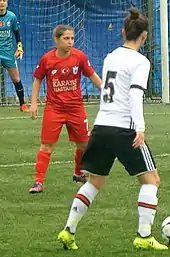 After six seasons, she transferred to the Izmir-based club Konak Belediyespor in August 2017.[1] She debıted at the UEFA Women's Champions League and played in three games of the 2017–18 qualifying round in Tbilisi, Georgia.[3][4][5]