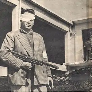 Soon after, both the communist and provisional governments began to organize militias as the police force declared neutrality.[2] Italy also sent in a force of 150 carabinieri to support the provisional government.[3] Initially the communists only had 150 men armed with German machine guns left over from WWII to 1891 muskets. The provisional government had a smaller 100-man force but was armed with more modern weapons.[1][2] The communists sent a letter to the United Nations asking for them to send a peacekeeping force but they were denied.[1] By 2 October, both forces had grown by about 100 men and a communist militant shot at an anti-communist militant but missed. No other shots were fired as neither side wanted to shed blood.[1][4]
