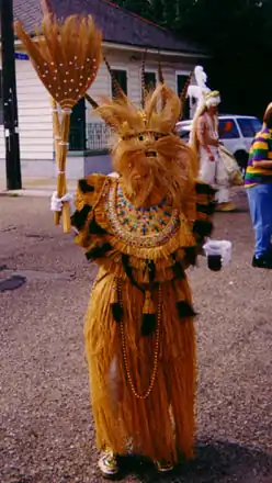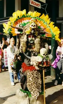 The Faubourg Marigny neighborhood of New Orleans, Louisiana is one of the most active on Mardi Gras Day, with many elaborate costumers strolling the streets. This part of town is relatively little visited by tourists compared to other areas with active celebrations.