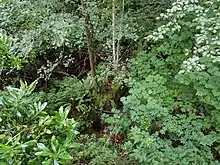Fauntleroy Creek is a stream in the Fauntleroy neighborhood of West Seattle, Washington, United States. It flows for about a mile from its headwaters in the 32-acre (129,000 m²) ravine of Fauntleroy Park to its outlet just south of the state ferry terminal on Puget Sound's Fauntleroy Cove, dropping 300 feet (100 m) vertically along the way. It currently supports cutthroat trout and coho salmon.