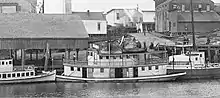 On February 18, 1908, it was reported that Favorite had been raised.[11] While the cause of the accident had not been determined by then, it was supposed that somehow the gunwale of the steamer had been caught under the beams supporting wharf floor, and as the river rose, the vessel was trapped and pushed under the water.[11] Favorite had sunk on a Friday, but with the use of jackscrews, and the aid of the tug Triumph and a scow, by Sunday evening, Favorite had been raised sufficiently high above the water for a fire to be raised in the boiler.[11] It was estimated that Favorite could be returned to service within a few days after repairs could be effected.[11]