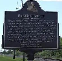- ↑ "Fazendeville marker dedication 4/19/21" (video of dedication ceremonies). Chalmette, Louisiana: St. Bernard Parish Television, April 19, 2021.