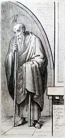 - ↑ In his Martyrology. For a modern edition, see: Saint Adon, dom Jacques Dubois; Geneviève Renaud (1984). Le Martyrologe d'Adon: ses deux familles, ses trois recensions: texte et commentaire. Sources d'histoire médiévale (in Latin). Paris: Centre national de la recherche scientifique. ISBN 2-222-03188-5.
