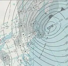 The February 1969 nor'easter was a severe winter storm that affected the Mid-Atlantic and New England regions of the United States between February 8 and February 10.[1] The nor'easter dropped paralyzing snowfall, exceeding 20 in (51 cm) in many places. New York City bore the brunt of the storm, suffering extensive disruption. Thousands of travelers became stranded on roads and in airports. The storm killed at least 94 people. City schools were closed for several days and some areas of the city remained uncleared for over a week. New York Mayor John Lindsay was criticized for failing to respond to the snowstorm adequately.