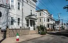 The first two decades of the 20th century witnessed heavy Italian-American immigration into Federal Hill, making it the city's informal Little Italy.[10] Though the area today is more diverse, Federal Hill still retains its status as the traditional center for the city's Italian-American community. Providence's annual Columbus Day parade marches down Atwells Avenue, where the street's median is painted with the Italian flag's Tri-color instead of the usual double yellow lines.