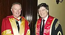 Father John O'Reilly was awarded Australian Catholic University's (ACU National) highest honour, Doctor of the University, honoris causa at the University's Melbourne Campus (St Patrick's) graduation ceremony at the Melbourne Town Hall on 28 April 2005. “Father O'Reilly was presented with this award for the long and outstanding contribution he has made to Catholic education through the development of new schools, services, churches and parishes in Victoria," said Professor Sheehan. Father O'Reilly was a foundation member of the Melbourne Catholic Education Board in 1963, and is currently the nominee of the Canonical Administrators on the Council of the Victorian Catholic Schools’ Association.