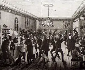 Possibly fearing for his life, he fled to Germany instead, where he presented himself as a "Royal Fencer" from Uppsala, and actually wrote a fencing textbook that was published by a company in Grimma. He also created portraits of prominent Swedes and scenes of Stockholm that were engraved by John Poppel (1807-1882) in Darmstadt. His stay in Germany ended when he became involved in some radical political movements and was forced to flee again; this time to Switzerland.[1] He settled in Geneva in 1850.