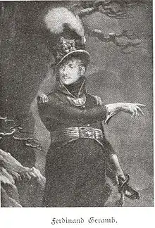 Ferdinand de Géramb (14 January 1772 – 15 March 1848) was an Ungro-French supposed nobleman, military officer, courtier, adventurer and later Trappist monk and religious author. He served as lieutenant-general in the Austrian army, chamberlain to the Austrian Emperor and titular abbot and Bursar-general of the Trappist order.