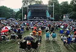 In January 2011, the Festival of Friends announced that it would be moving from its historic home in Gage Park to the Ancaster Fairgrounds.[8] At the time, Lieberman and city councillor Bernie Morelli stated that the festival had simply outgrown the park.[9][8][10][11] The exodus from Gage Park was sharply criticized by founder Powell,[12] as well as a chorus of the festival's regular local musicians.[13] The first year at the new location was marred by parking headaches and traffic gridlock,[14] and the 2012 festival was hit with three days of heavy rain, but Lieberman insisted there were no plans to move the festival back to Gage Park as this would force a substantial reduction in size.[15] "The location was no longer working, but the music still is," he remarked in 2015.[16]