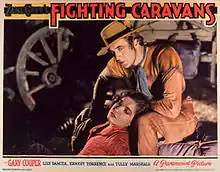 Fighting Caravans is a 1931 American pre-Code Western film directed by Otto Brower and David Burton and starring Gary Cooper, Lili Damita, and Ernest Torrence.[1] Based on the 1929 novel Fighting Caravans by Zane Grey, the film is about a young frontier scout who helps guide a freight wagon train across the country, fighting off Indians and evil traders, while his two crusty companions try to save him from falling in love. Although billed as being based on the Zane Grey novel, the stories have little in common. The film was actually written by Agnes Brand Leahy, Edward E. Paramore, Jr., and Keene Thompson.[1]