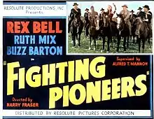 Fighting Pioneers is a 1935 American Western film directed by Harry L. Fraser and written by Harry L. Fraser and Charles E. Roberts. The film stars Rex Bell, Ruth Mix, Buzz Barton, Stanley Blystone, Earl Dwire and Chuck Morrison. The film was released on May 21, 1935, by Resolute Pictures Corp.[1][2][3]
