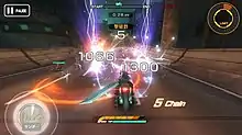 Final Fantasy VII G-Bike was a free-to-play racing game involving Cloud Strife, a young mercenary and protagonist of Final Fantasy VII. The game involved Cloud riding a motorcycle while fighting enemies as he travelled the roads around the city of Midgar as well as other locations.[1] Besides attacking with his weapon called the "Buster Sword", Cloud could perform magic with items called "Materia".[2] He was capable of performing a series of powerful attacks known as "Limit Breaks". Players could summon supporting characters from the original Final Fantasy VII such as Tifa Lockhart.[3][4] Bosses drawn from FFVII are encountered at the end of stages, including Reno and Dyne.[5][6] Players were awarded a ranking at the end of each stage based on how well they did.