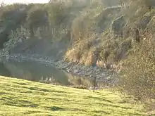 Finedon Top Lodge Quarry, also known as Finedon Gullet (and in the 1960s documented as 'Wellingborough No. 5 Pit') is a 0.9-hectare (2.2-acre) geological Site of Special Scientific Interest east of Wellingborough in Northamptonshire.[1][2] It is a Geological Conservation Review site[3] revealing a sequence of middle Jurassic limestones, sandstones and ironstones, and is the type section for a sequence of sedimentary rocks known as the 'Wellingborough Member'. It was created by quarrying for the underlying ironstone for use at Wellingborough and Corby Steelworks; the ore was transported by the 1,000 mm (3 ft 3+3⁄8 in) gauge Wellingborough Tramway.[4]