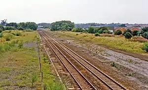 It had one island platform. Being a mile and a half from Finedon village it was little used in later years and closed to passengers in 1940. It remained open for goods until 1964 and had quite large sidings for the local stone, with a tramway to the Excelsior and the Finedon Hill mines.[1]