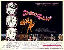 Finian's Rainbow is a 1968 musical fantasy film directed by Francis Ford Coppola and starring Fred Astaire and Petula Clark. The screenplay by E. Y. Harburg and Fred Saidy is based on their 1947 stage musical of the same name. An international co-production of Ireland and the United States, the film follows an Irishman and his daughter who steal a leprechaun's magic pot of gold and emigrate to the U.S., where they become involved in a dispute between rural landowners and a greedy, racist U.S. senator.