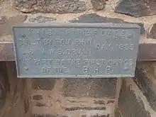 The original syndicate of seven which held the seven mining leases[2] on the broken hill named their venture the Broken Hill Mining Company. Following the discovery of rich silver ores in early 1885, the syndicate appointed William Jamieson as manager in April 1885 and registered the name Broken Hill Proprietary Co. Ltd, in June 1885. The BHP chimney marks the site of the hut built by Tom Phin and W. B. Orman for the company in May 1885 to house Jamieson. It was located amongst the busy mining area at the Line of Lode, the rocky outcrop which contained the ore body and was used for a short time as the BHP works office where all mining business was conducted. Although Jamieson resigned at the end of the year, during that period at this site he undertook planning of the original development work at the mine including the erection of the first smelters. The BHP Chimney is the only remaining remnant of the hut which dates from the year that mining activities began in Broken Hill and when it began its development as a remote inland town.[1]