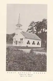 The First Baptist Church is a historic church building at 362 Lamoine Beach Road in East Lamoine, Maine. The wood frame Greek Revival building was built in 1832 by a noted local builder/architect, and was altered in 1879 to include a Victorian tower and porches. The building was listed on the National Register of Historic Places in 2001.[1]