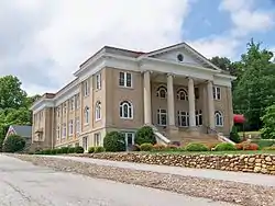 First Presbyterian Church is a historic Presbyterian church located at 12 W. Fort Streets in Marion, McDowell County, North Carolina. The congregation was established in 1845, and the current church building was constructed in 1923. It is a one-story plus balcony Classical Revival style brick building set on a raised basement. The front facade features a monumental Ionic order tetrastyle pedimented portico.[2]