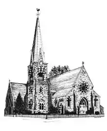 The fifth building was built in 1863, on the same site occupied by the fourth. By 1867 the church became known as the First Reformed Church. The architectural landmark building was designed by Victorian-gothic architect Edward Tuckerman Potter. This building was hit by a fire on Sunday, February 1, 1948. The fire began at 4:45 p.m. and continued through the night destroying the entire structure except for three of the exterior walls, which would be the basis for the current structure. The congregation, with generous assistance from the Schenectady community, restored the edifice to its present form.[5]