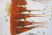 The peristome teeth of Fissidens are morphologically identical to the members of the family Dicranaceae.[18]