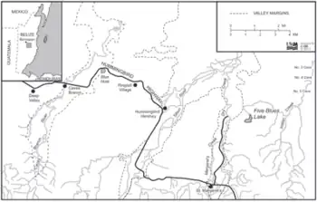 - ↑ Day, Mick; Reynolds, Bill (2012). "Five BluesLake National Park, Belize; A cautionary management tale" (PDF). Journal of Cave and Karst Studies. Journal of Cave and Karst Studies,v. 74, no. 2, p. 213–220. 74 (2): 213–220. doi:10.4311/2011JCKS0203. Retrieved Dec 4, 2016.