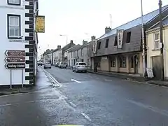 • The A4 is the main route into Fermanagh (and on to County Sligo) from the Belfast direction. Running from the end of the M1 at Dungannon, the section through the Clogher Valley is the lowest standard on the whole route. While towns and villages along the A4 in Fermanagh were generally bypassed years ago, the A4 runs straight through the middle of three Tyrone villages: Augher, Clogher and Fivemiletown. These are now the only non-bypassed settlements on the road. The largest of these, Fivemiletown, will be bypassed. The village currently has a one-way system to cope with the heavy traffic on the narrow main street, but this stalls long-distance traffic and is a big inconvenience to residents of the village. The new road will be built to 2+1 standard, meaning that there will be one lane in one direction, with two in the opposite direction to permit overtaking. On longer routes, such as this one, the overtaking lane usually alternates giving an overtaking opportunity to traffic in each direction. The scheme will complement a 2+1 scheme completed on the A4 outside Fivemiletown in 2004.[8]