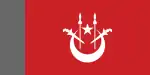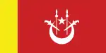DesignA red field defaced with a white crescent and star and two white kris and spears.