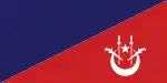 Flag of the Private Secretary to the SultanA blue-red per bend divided flag with a white crescent and star and two white kris and spears in the bottom right.