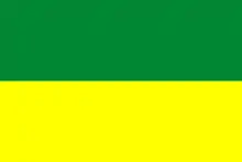 The flag of The Hague was on established on December 2, 1920 by a decision of the municipal government of The Hague. In 1920, it was decided that the flag would consist of two equal stripes of green and yellow. On March 28, 1949 the colors were modified. The order of the colors was reversed and the hue of the green stripe was changed.[1]