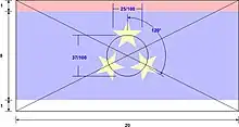 DesignThe horizontal tricolour of red, blue and white colour, with three yellow five-pointed stars
