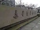 The soil held in the grass bed was collected by children from 70 war cemeteries and battlefields in Flanders in 'ceremonies of remembrance'.[1][2] Prince Philip, Duke of Edinburgh and Prince Laurent of Belgium were present for the ceremony in Ypres to hand over the sandbags of soil for the memorial on Armistice Day in 2013.[1] The soil was carried by Belgian and British schoolchildren and soldiers from the British Household Division, who loaded the soil onto a gun carriage of the King's Troop.[2] From Belgium the soil was transported by sea by the Belgian Navy's frigate Louisa Marie (F931) and was given to the British Army on 29 November 2013 while alongside HMS Belfast. The sandbags were then transported through London on the original gun carriage to the memorial garden.[2]