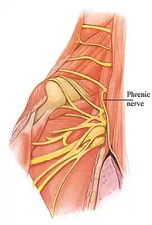 Position of Phrenic nerve in a sleeping kitten. The nerve bifurcates and runs down both sides of the neck.