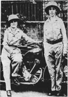 In June 1935 the Woman Engineer journal reported "Miss Wallach and Miss Blenkiron are now heading for Nairobi on their motorcycle combination; some of their more unpleasant adventures have included four nights in a tropical jungle without food or shelter, and capture by Tourags in the desert".[6]