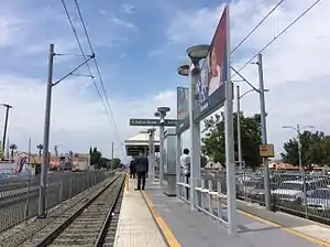 Florence station is an at-grade light rail station on the A Line of the Los Angeles Metro Rail system. The station is located alongside the Union Pacific freight railroad's Wilmington Subdivision (the historic route of the Pacific Electric Railway), at its intersection with Florence Avenue, after which the station is named, in the unincorporated Los Angeles County neighborhood of Florence.[3]