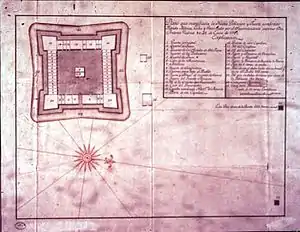 In Floridablanca the modern ideas of the Spanish Enlightenment were put in place.[7] The concepts of agriculture and family were the centre of the discourse for the colony. Agriculture was selected as the main means of support for the settlement.[8] An attempt to guarantee agricultural development through building a society of farming families tied to the land. Households were seen as the essential unit of society and the basic elements needed for their maintenance was determined by the Spanish Crown (i.e., lodging, food, health, land, seeds and production means).[9]