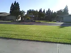 Florin High School's architecture adopts the University of Virginia's "academical village" building plan.[2] This plan anchors the school on the library. Two parallel rows of classrooms run down from behind the library with a manicured lawn in between the two rows. Other permanent classrooms exist as contemporaries to the anchor architecture plan. Since the school's inception, the Elk Grove Unified School District has added a number of other permanent and temporary classrooms.
