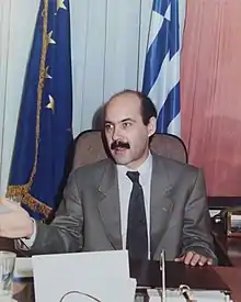 From October 1993 to September 1995, he was Deputy Minister of Agriculture in the last government of Andreas Papandreou. He handled Agriculture and Fisheries issues in the European Union, especially in the first half of 1994, when Greece held the presidency of the EU and patented over 150 products as PDO and PGI (oils, cheeses, fruits, legumes, etc.), including the Greek Feta.[3] In the period 1996–1997 he was a consultant at the Ministry of Foreign Affairs and then a consultant at "SEKAP" industry. He published two books on Greek agriculture within the framework of the European Union ("Greek Agriculture and the International Environment" by Livani's Publishing) and regularly wrote to the Greek Press.